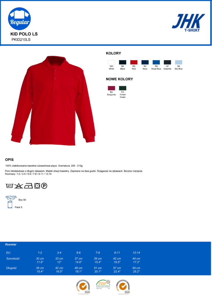 Zapinane na dwa guziki. Ściągacze na rękawach. Boczne rozcięcia. łatwo usuwalna metka. 100% stabilizowana bawełna czesankowa pique.Gramatura: 200 – 210gRozmiary: 3-4 / 5-6 / 7-8 / 9-11 / 12-14GM – 85% bawełna / 15% wiskoza