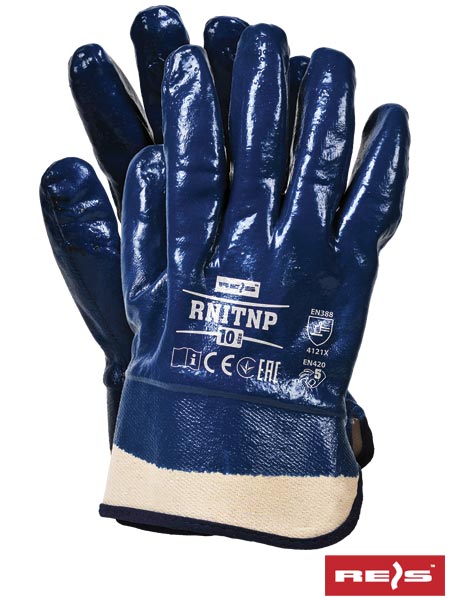 Rękawice ochronne powlekane nitrylem, zakończone usztywnianym mankietem.